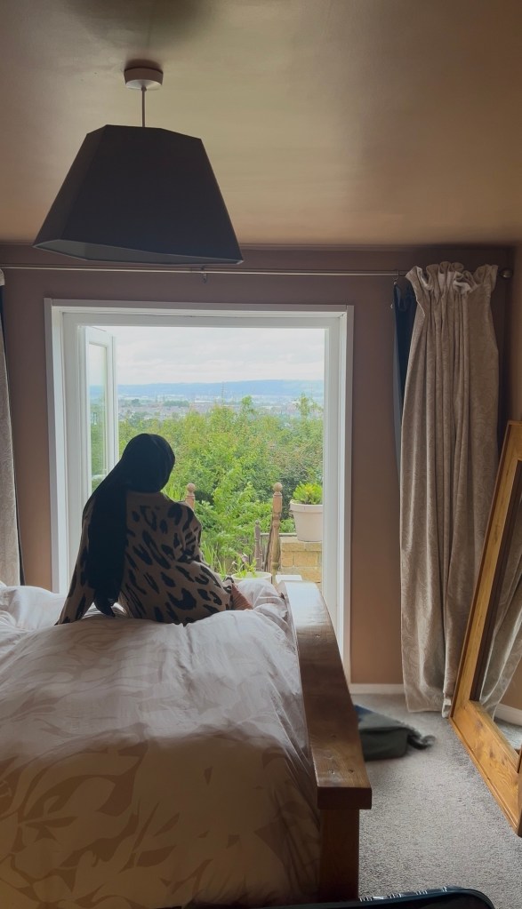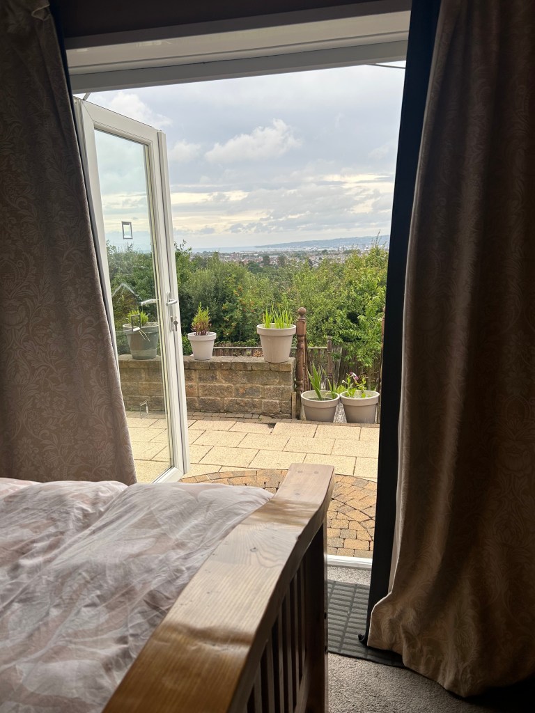 We stayed in a gorgeous Airbnb overlooking the city. The bedroom view at night was stunning.